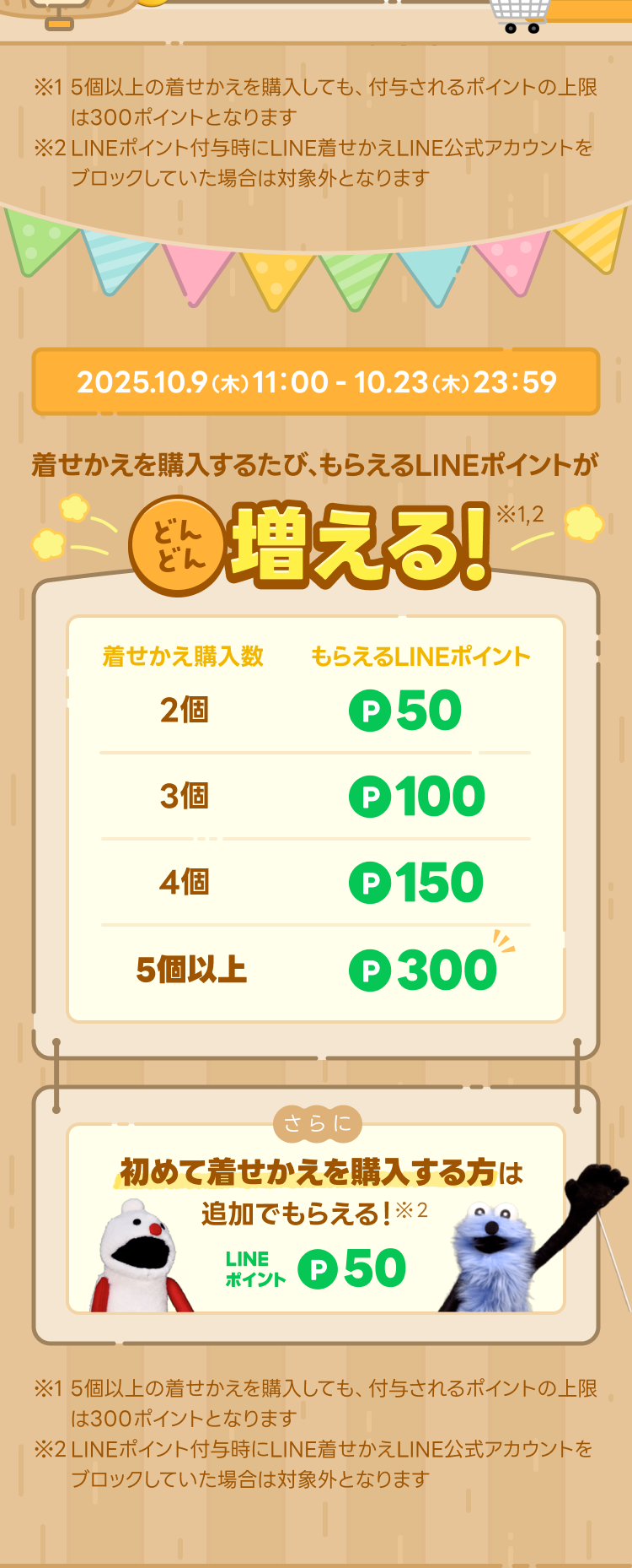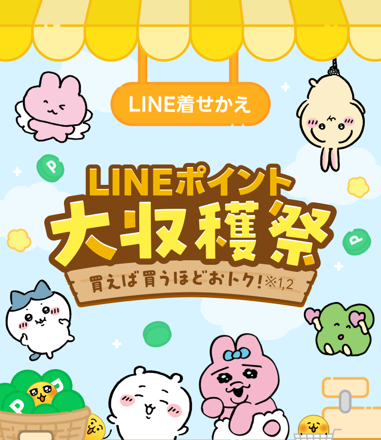 ※5個以上の着せかえを購入しても、付与されるLINEポイントの上限は300ポイントとなります。
