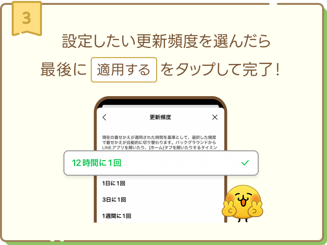 着せかえを購入する際、コインをお持ちの場合、[コインチャージ]で購入したコインが優先的に消費されます。購入したコインだけで不足する場合に保有するLINEポイントがコインに自動的に交換されて消費されます。購入後のキャンセルはできません。