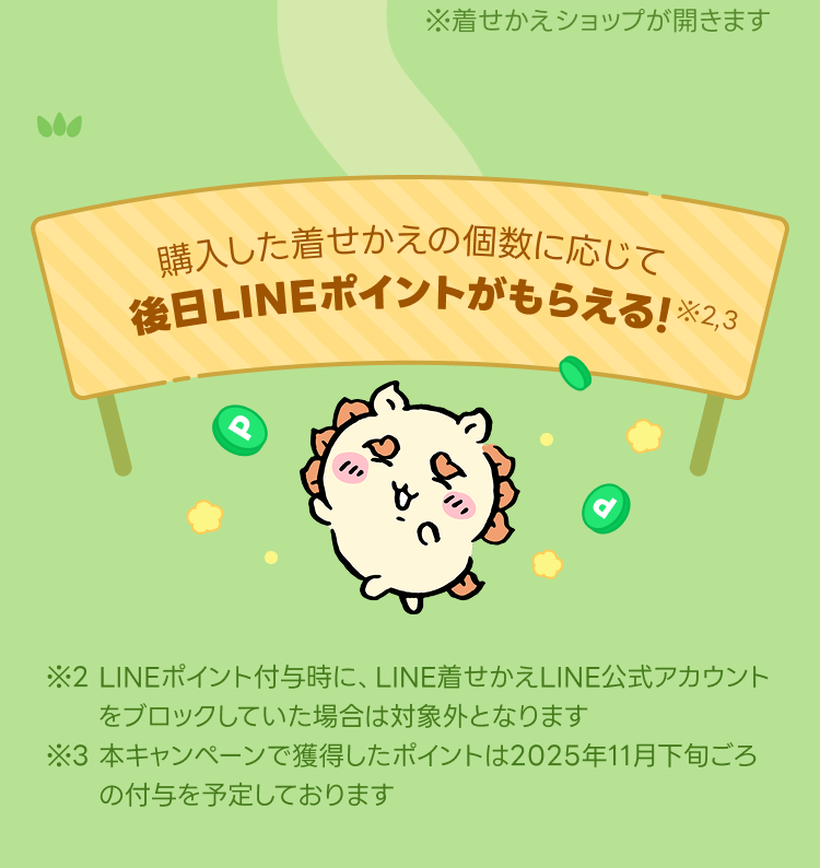 ※LINEポイント付与時にLINE着せかえLINE公式アカウントをブロックしていた場合は対象外となります。