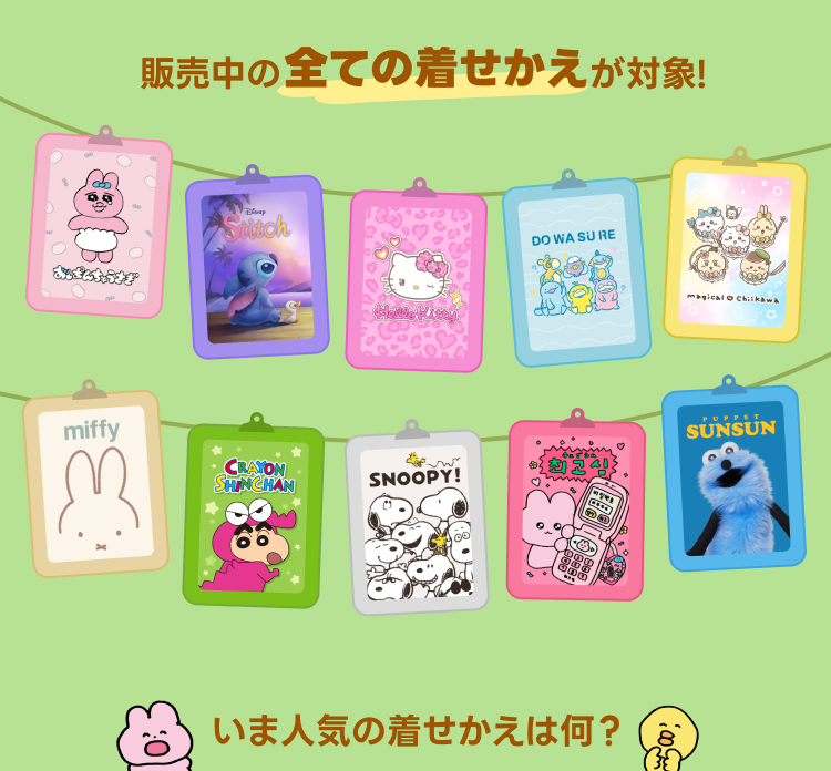 キャンペーン期間中に販売されている全ての着せかえ(公式着せかえ・クリエイターズ着せかえ)が対象となります。